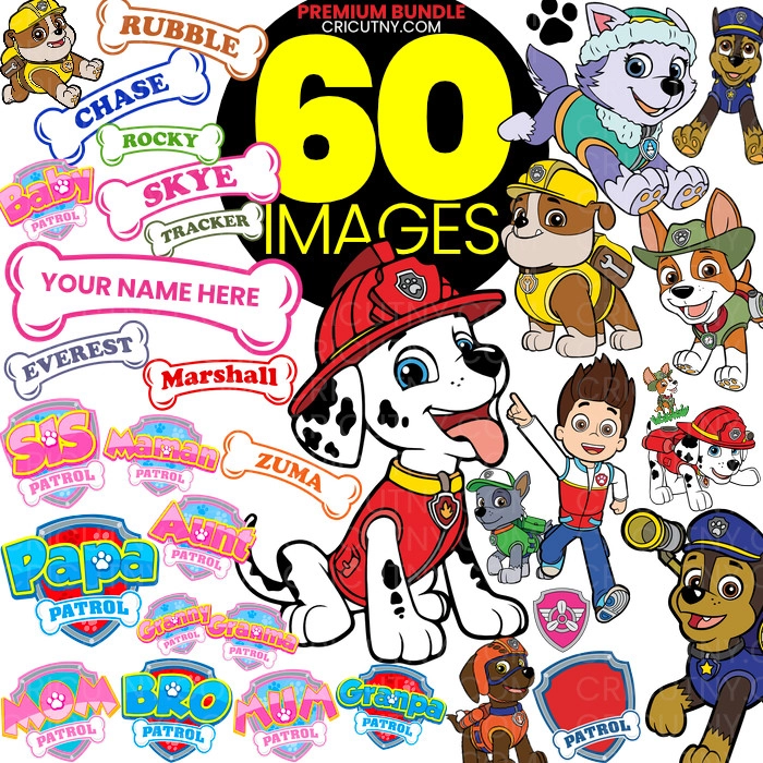 Paw Patrol Characters Images with Badges, Bones and Fonts